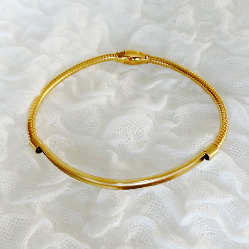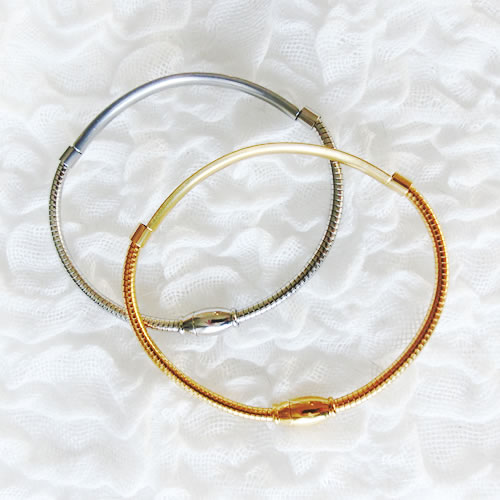ワイヤー約3mmのオーバル型(丸角)ブレスレットでストーンを埋める事で充分存在感があります♪