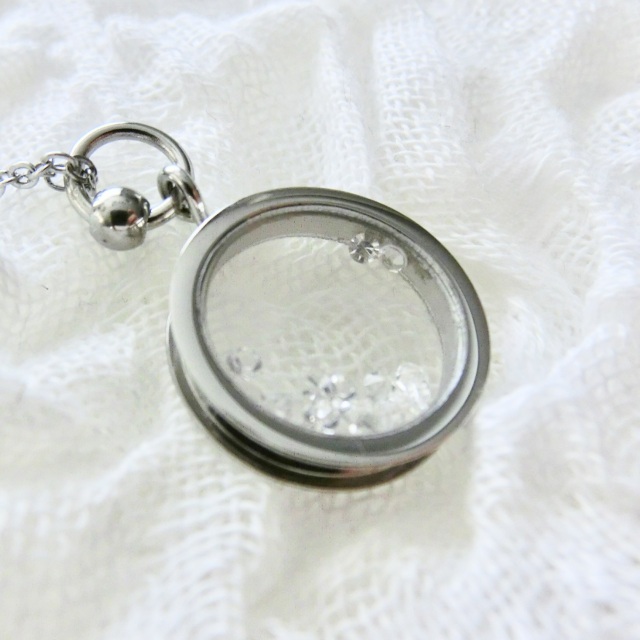 クリアストーン入り 丸 サークル型で周りをぐるりと一周グルーで埋めるタイプでどんなお洋服にも着けやすいデザインのチェーン付きネックレスです。