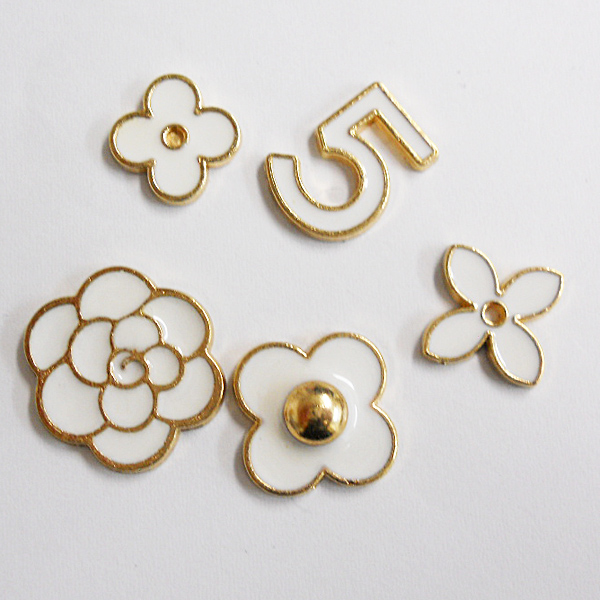 • メタルデコパーツ 白5個セット 手作りアクセサリー パロディ カメリア iPhone スマホケース【メール便OK】