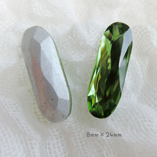クリスタル・ビジュー・ファンシーストーン10個セット!【メール便OK】高級ガラスファンシーストーン ビジューラインストーン DS-74 グリーン バー/オーバル形 8mm×24mm